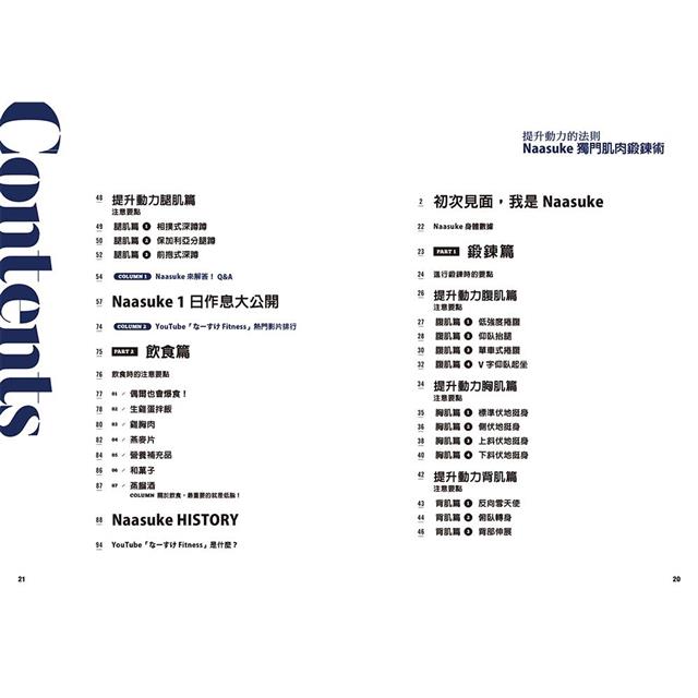 無論規劃得再怎麼周詳,只要無法繼續、或是無法「每天」持續去做,就會失去訓練的意義了。Naasuke過去也為自己單薄的體態感到憂心,在投入棒球運動、並於大學三年級接觸到健身之後,便一頭鑽進了探索與實踐的領域。從中找出能夠讓大家每天都能運用零碎時間輕鬆進行、能夠長久維持的訓練術。