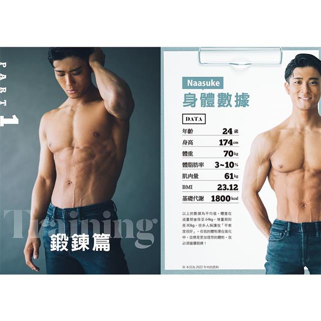 身為一個曾對自己的身材感到自卑的人,Naasuke投入了相當多的時間與心力鑽研鍛鍊之道。在相關章節中,他將會針對自己的「作息」與「飲食」等層面進行分享。各位除了可以了解到在一天之內巧妙變化各種身分的Naasuke是如何切換開關的,亦能將其作為參考,配合自身的狀況規劃出自己的生活作息版本。