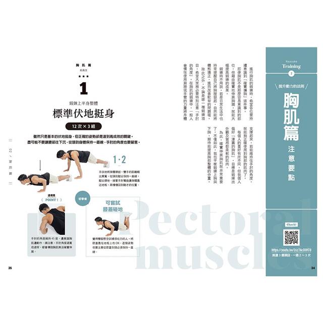 ★Naasuke流訓練要點2:針對腹肌、胸肌、背肌、腿肌等四大領域規劃,搭配書中圖文與QR code連結影片進行