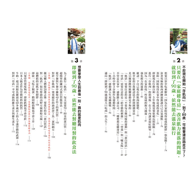收錄30多篇涵蓋各式健康相關知識的主題分享。進行「存肌肉」的運動固然重要,但依舊必須建立在正確的生活觀念上。