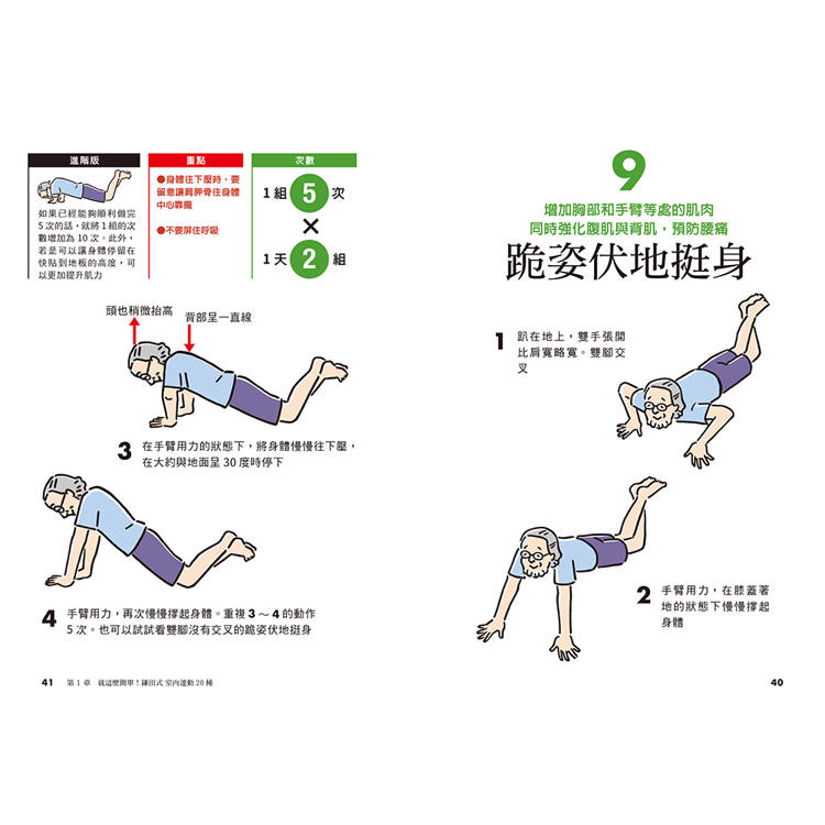 跪姿伏地挺身、伏牆挺身與手指伏牆挺身 38