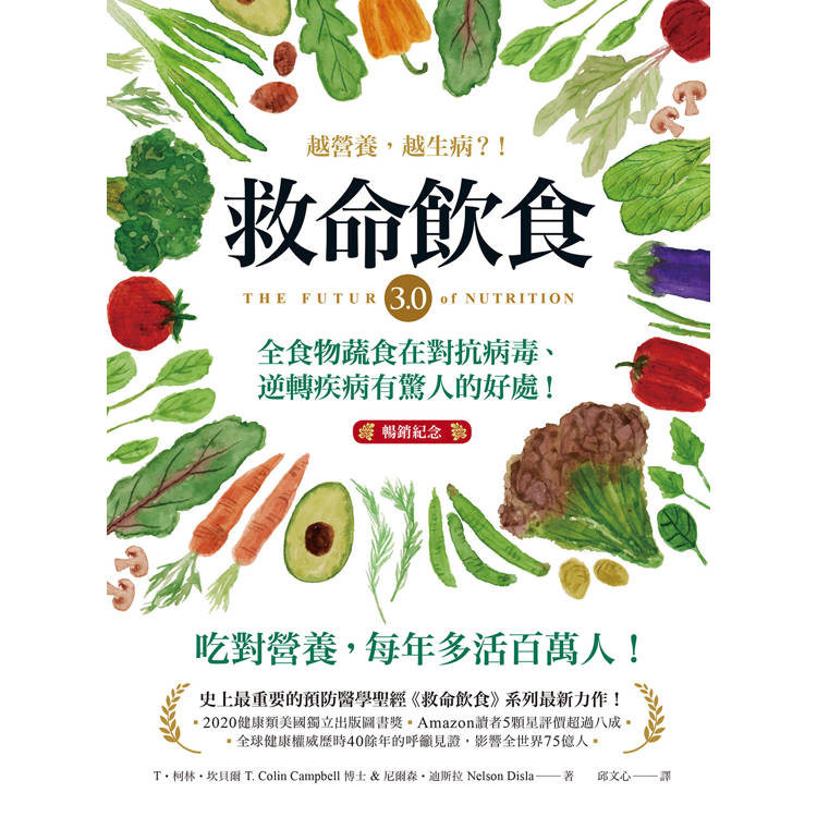 柯林.坎貝爾是營養界的傳奇人物。六十幾年來,他的科學研究和提倡,改變了世界對於「我們的飲食如何造成或預防癌症」的了解。在《救命飲食3.0》中,坎貝爾預言了採取全食物蔬食飲食的人會更健康,並且造就更健康的地球。為了讓我們達成這個目標,坎貝爾讓我們看到長期存在的阻礙:相互對立的營養界必須進化,才能接納現代科學,同時超越過時的思維。