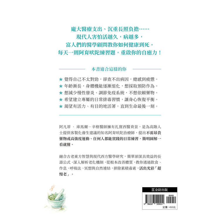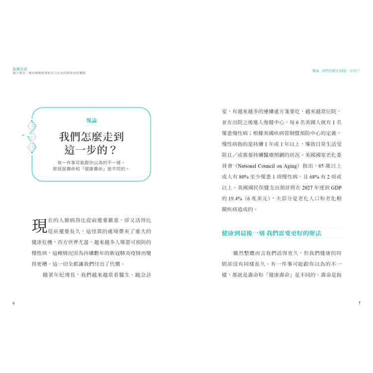 本書不是教你對抗自然老化的法則,而是教你如何活得更好。讓健康不只是延長壽命,而是展延你真正想活的每一天。