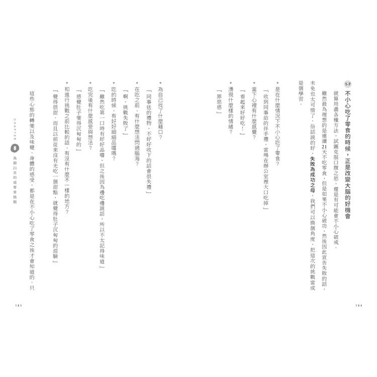 搭配戒糖日誌紀錄,實際執行人人都能做到的21天戒零食挑戰,真正脫離糖癮的惡性循環,徹底與甜食分手。