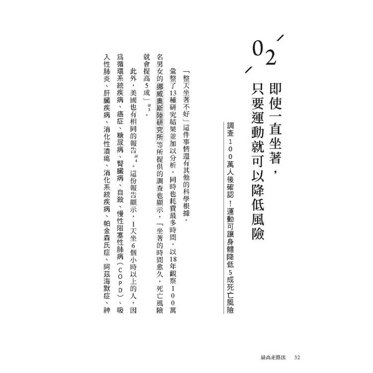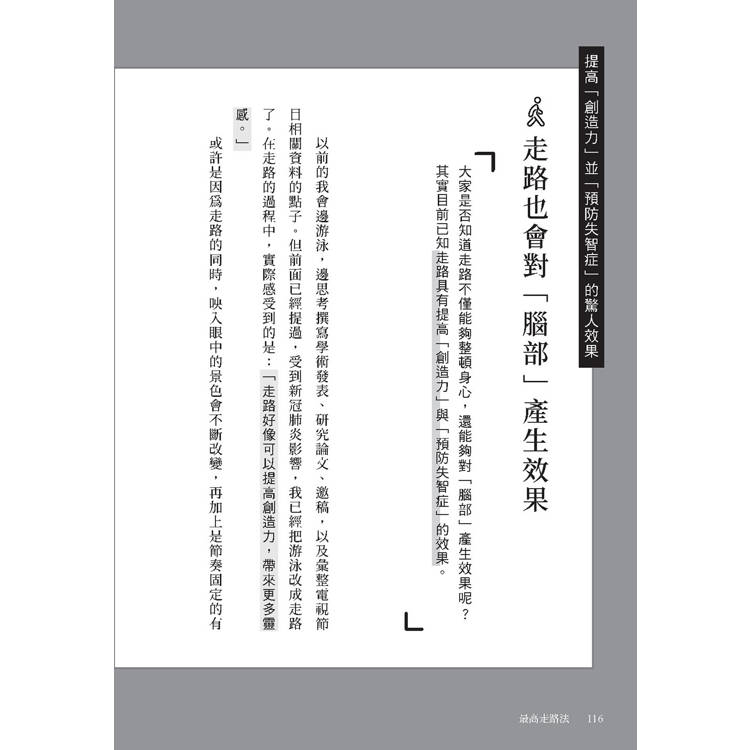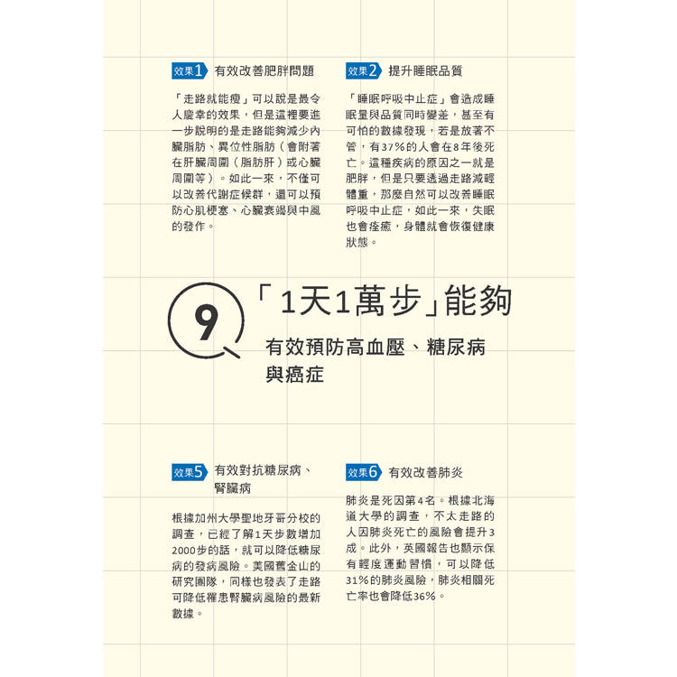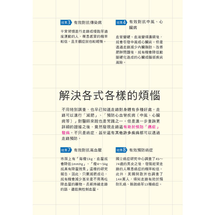「過去我總是有各種藉口不走路,但看了這本書之後,覺得必須經常走路,走路對健康有莫大的幫助!」