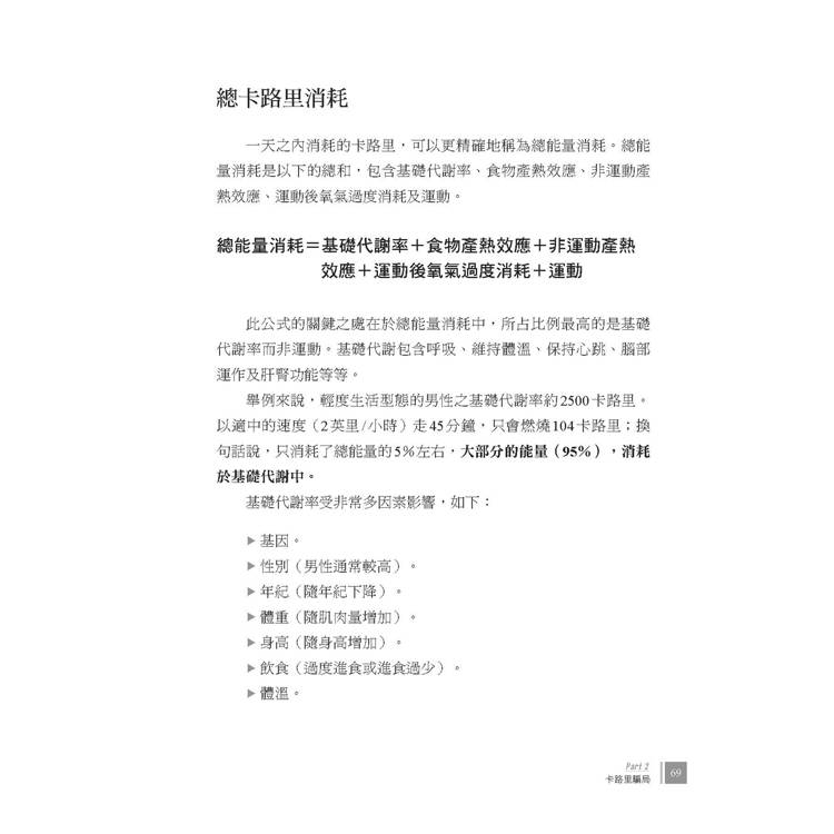 這個假設大錯特錯,在這個章節末,我會提及許多的實驗及經驗證實這個假說有誤。事實上攝取的卡路里與消耗的卡路里密切影響彼此。減少卡路里的攝取,會引發卡路里的消耗減少;例如,攝取減少30%的卡路里,卡路里的消耗也會跟著減少30%,最終體重只會下降一點點。