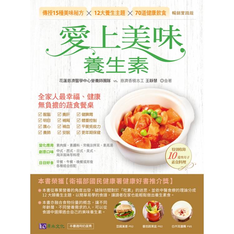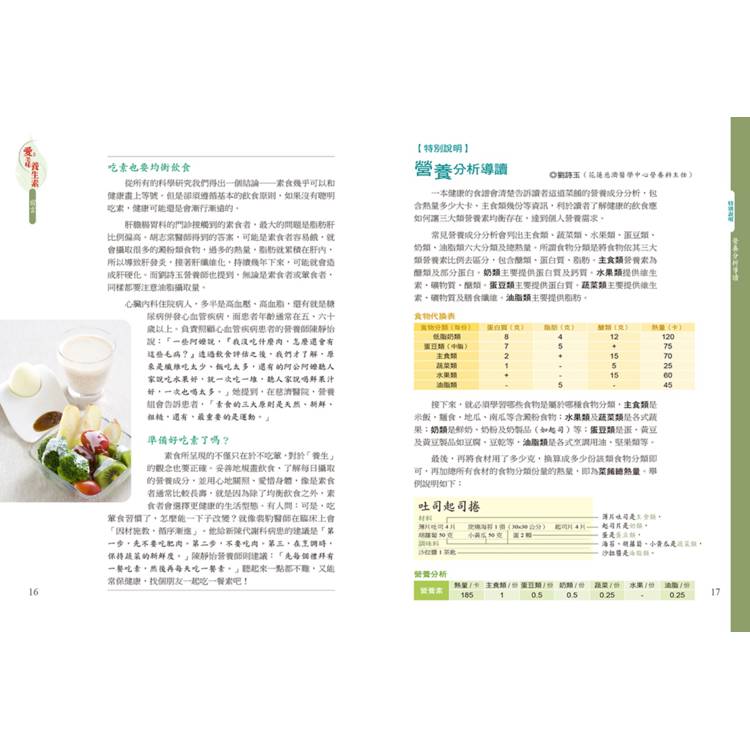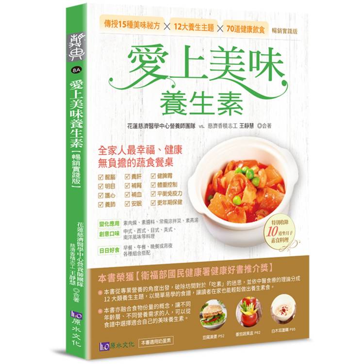 由三位慈濟醫師撰文,結合新陳代謝、婦產科、皮膚科等臨床經驗,搭配營養師專業分析,解答「吃素會不會不健康?」等常見疑問,讓你吃得安心、有據可依。