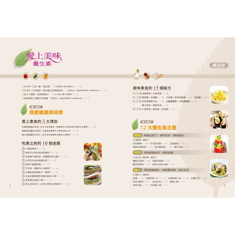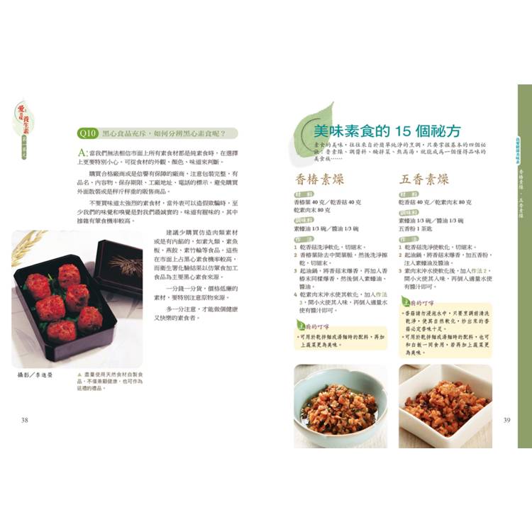特別收錄15個美味祕方,包括香椿素燥、羅勒醬、百香果醃青木瓜、牛蒡高湯等,讓素食料理不再清淡無味,而是香氣十足、變化多元。