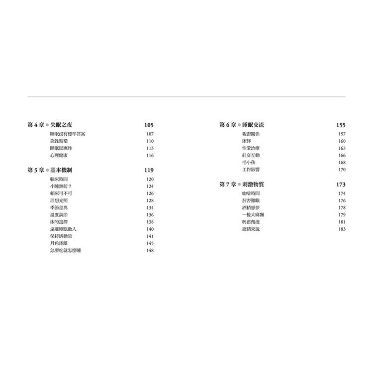 4. 理論 × 實踐,給忙碌現代人的睡眠指南:將睡眠理論轉化為簡單可行的生活指南,包含光照、溫度、飲食、運動和心理放鬆等方式,幫助壓力大的現代人輕鬆入眠。