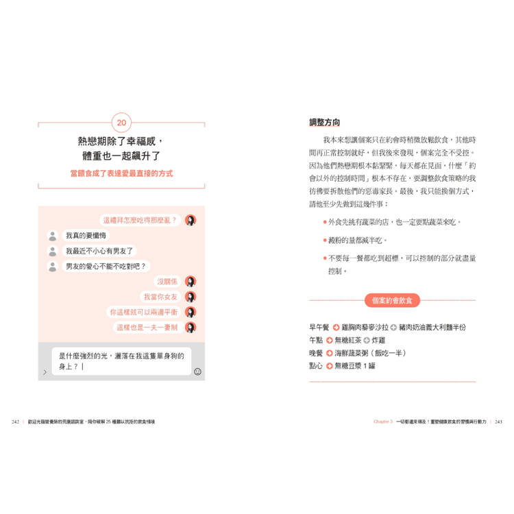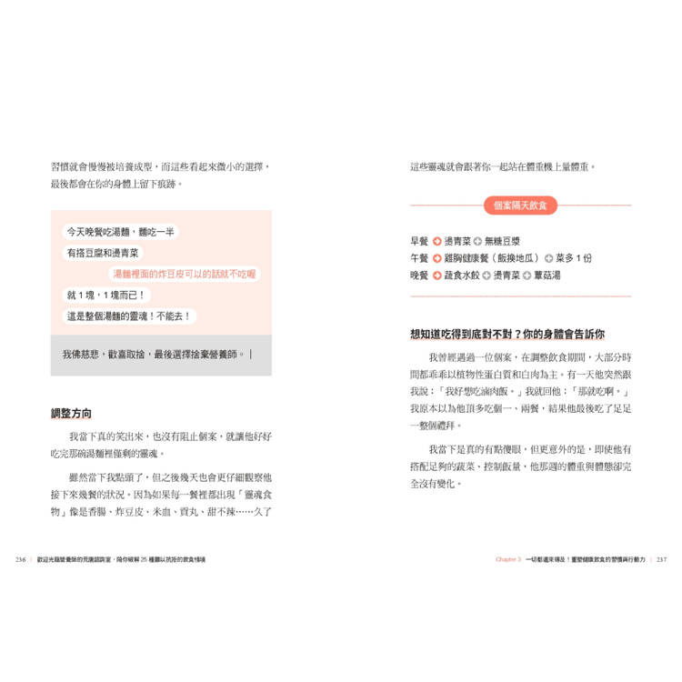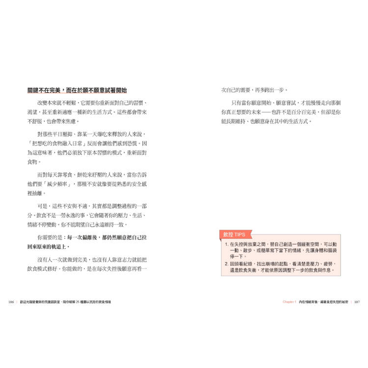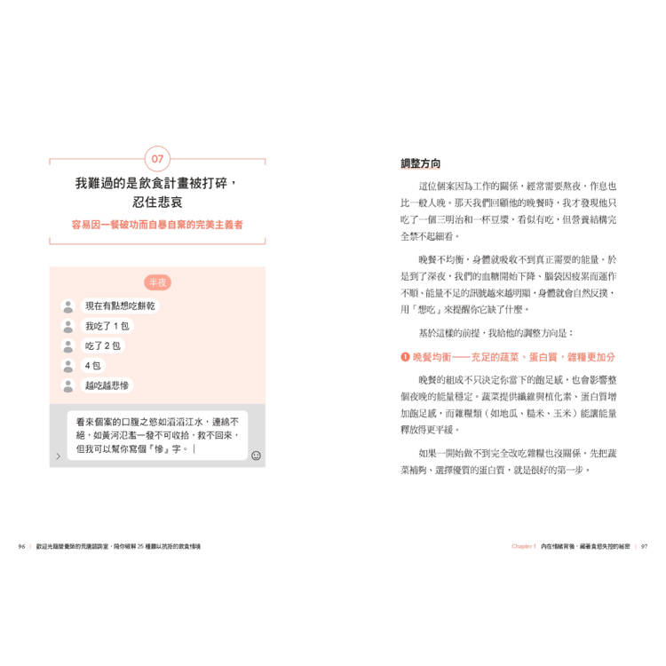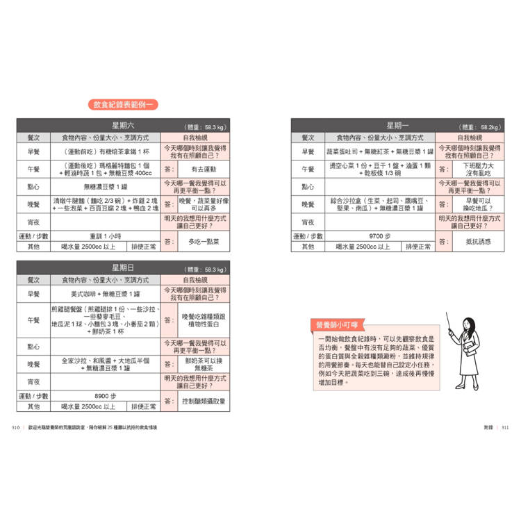並陪伴你走出飲控每階段會遇到的難題、誠實面對自我,逐步調整失控的飲食節奏。