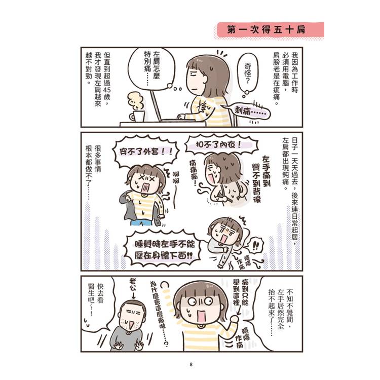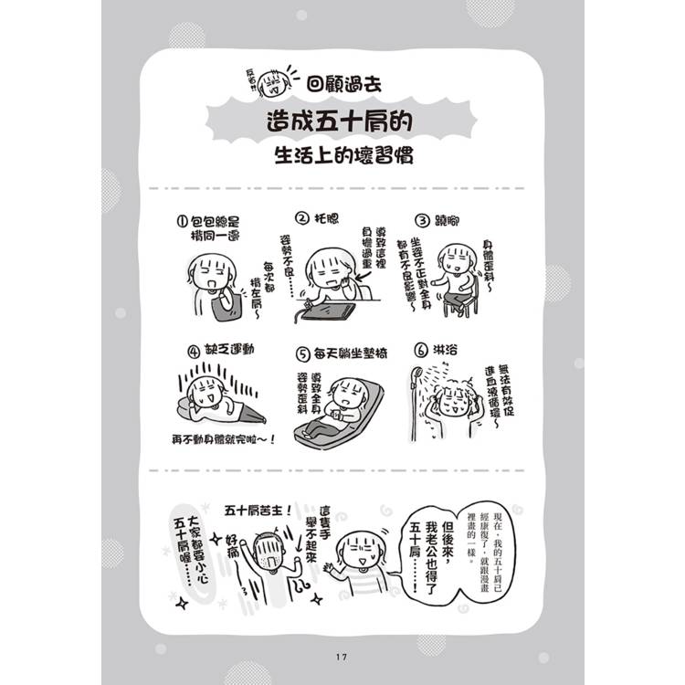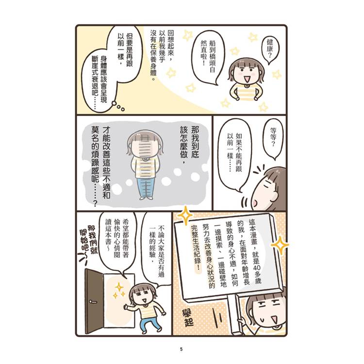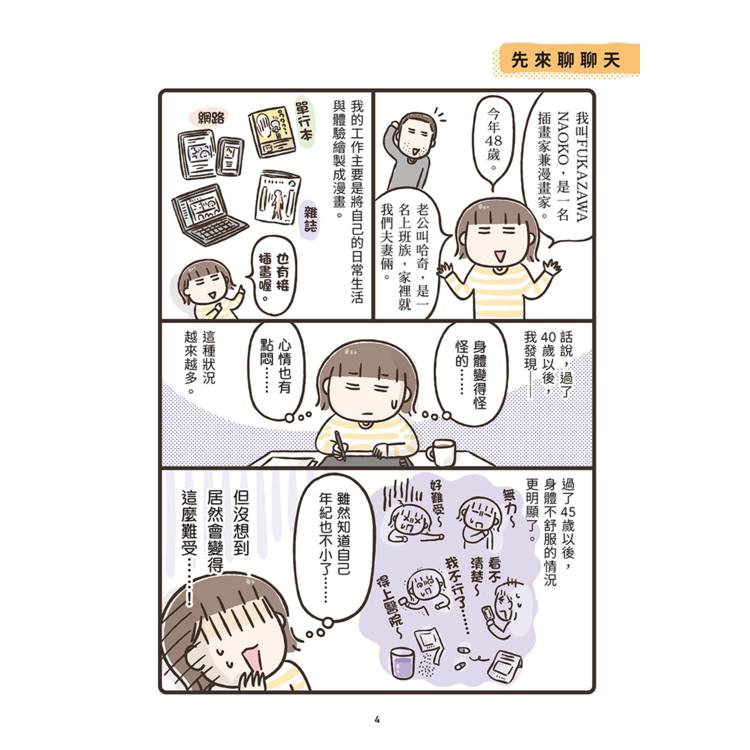 作者透過充滿崩潰卻令人會心一笑的漫畫,把那些說不出口的中年危機,化為一幕幕笑中帶淚的日常小劇場;同時搭配醫師解說與簡單可行的生活建議,讓讀者明白:這是一場長期作戰,但你並不是孤軍奮戰!