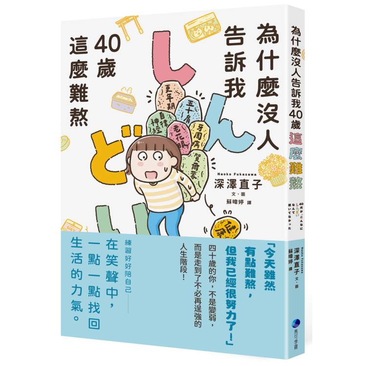 作者透過充滿崩潰卻令人會心一笑的漫畫,把那些說不出口的中年危機,化為一幕幕笑中帶淚的日常小劇場;同時搭配醫師解說與簡單可行的生活建議,讓讀者明白:這是一場長期作戰,但你並不是孤軍奮戰!