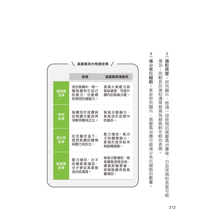 營養層面強調抗氧化營養素如維生素C、E、Omega-3、多酚與穀胱甘肽;運動方面則結合有氧與重量訓練以維持肌肉與代謝;醫學面向介紹電波、音波、高壓氧艙等新興科技,讓你能選擇最適合自己的保養方法,獲得最佳身心狀態。