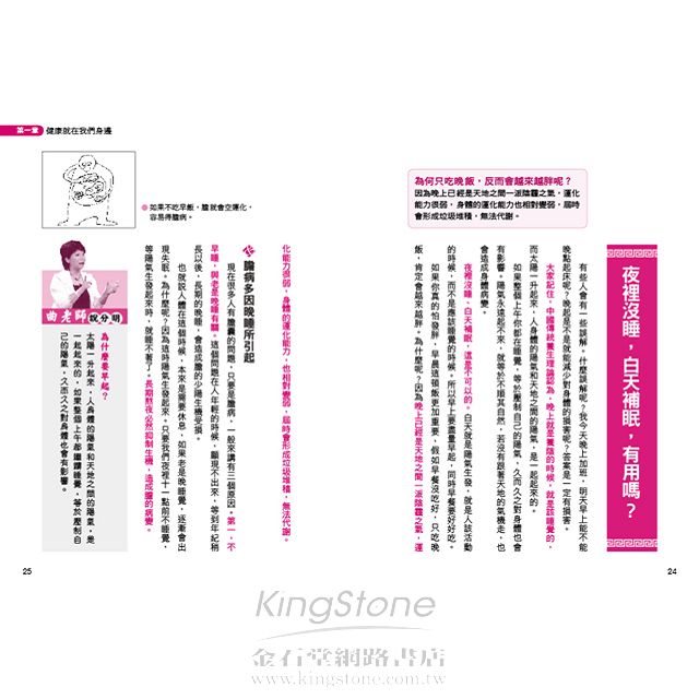 曲老師娓娓細說,深入淺出的內容,蘊含身體和心靈兩個層面的養生智慧,讓「養生」回歸於生活方式,使養生的概念成為一種生活態度,讓讀者參悟大道至簡、切身實用的養生精華,瞭解中醫的治病原理。