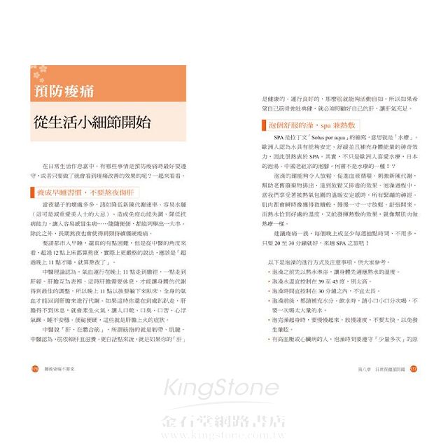 本書以中醫的觀點,從身體全身性痠痛與各局部疼痛的成因談起,深入淺出,再一一釐清各個族群好發的痠痛問題,對症下藥,從內在調理。能瞭解自己身體,善用身體機能,才能讓腰痠背痛的毛病遠離你。
