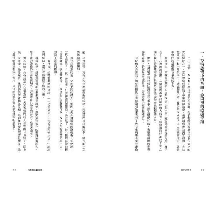 有好多次,當我要送藥給SARS病人服用前,都會停在畫像前片刻,雙手合十,心裡默默祈願:「願這劑湯藥能減輕病人的苦,願醫護同仁都能平安。」深信觀世音菩薩能庇佑與護持惶惶不安的病患和醫護人員。