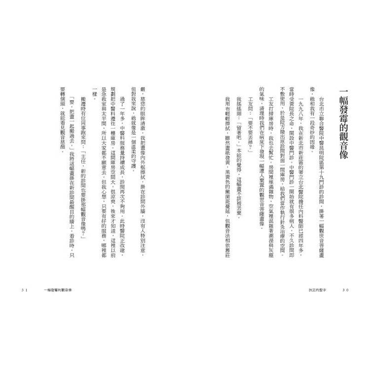 不可思議的是,竟然有病友受到奇妙指引,要他去找診間裡有掛觀世音畫像的醫師看病(註),這些都不是藥物能做到的,卻能給病人有更多扶正的力量。