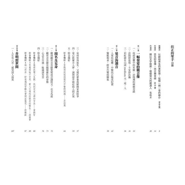 第三本《扶正的聖手》共八章,真實整理、歸納、記錄「自助,人助,天助」的妙音故事,天地人一體的扶正力量,奇幻不可思議的巧妙安排,看不見的殊勝聖手,在您我天地間流轉。從一幅發霉的觀音像說起,到第八章傳遞善知識,希望大家不只守護身心靈平安健康,也期待善善相應的扶正,在寰宇世界每個角落,盡虛空遍法界,世世代代流轉。
