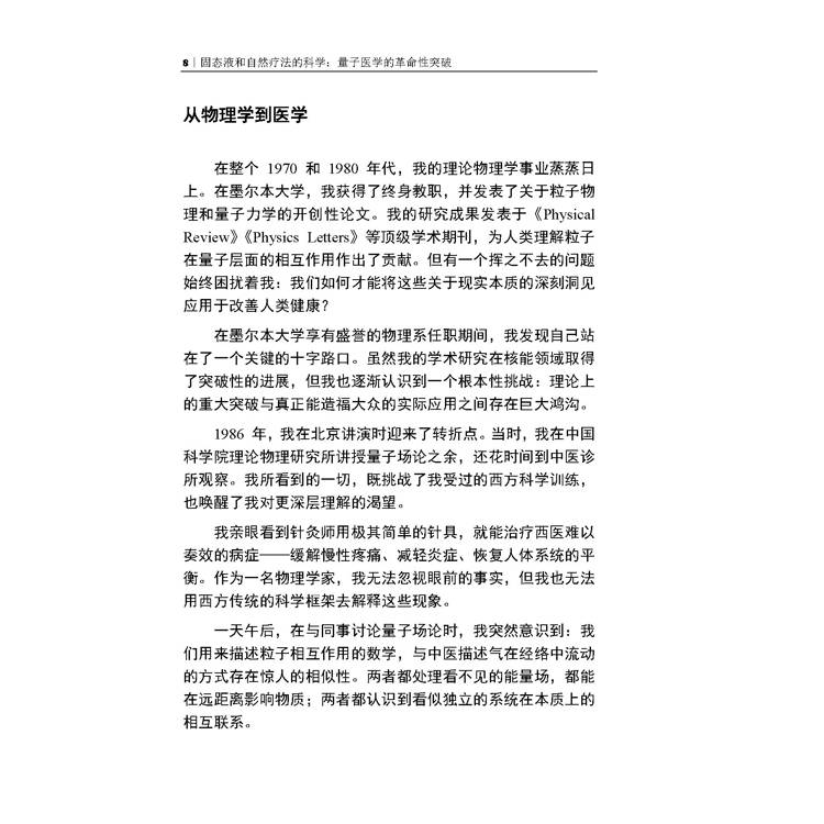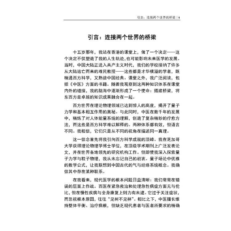西方量子物理已揭開微觀世界的奧秘,而數千年中醫則淬煉出關於人體能量的精妙系統。二者路徑不同,卻或許指向同一健康真理。作者盧遂顯博士遠赴芝加哥大學攻讀理論物理學博士,沉浸于量子場論的優美方程式之間,卻始終未忘中醫氣血經絡之哲思,並逐漸意識到現代醫學的困境:西醫長於急救,卻在慢性病與整體調治上常顯局限;中醫強調整體平衡,卻缺乏現代科學所要求的量化驗證。真正的突破,需在二者交匯處萌發。
