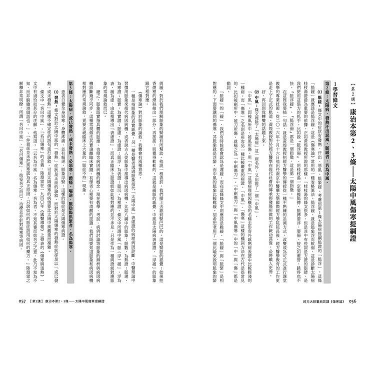 ✦康治本兼具疾病總論、通治法則,這是《傷寒論》的精髓,也是康治本的獨特之處。✦康治本的65條文井然有序,邏輯清楚,上一條是下一條的前提,下一條又是上一條的補充,互相對照參考,效果事半功倍。