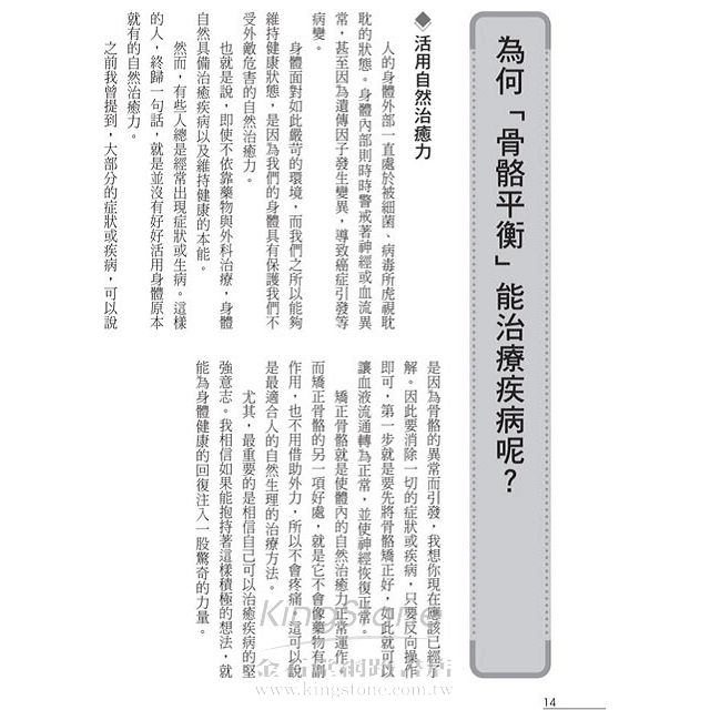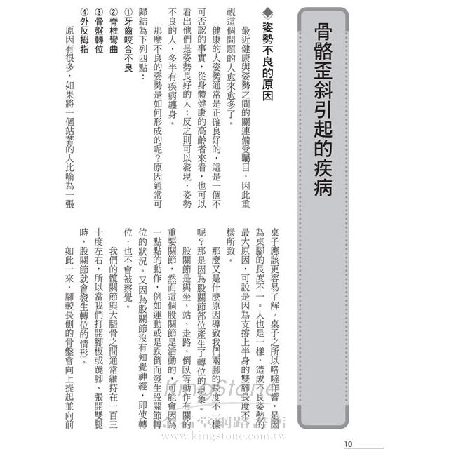 從醫生的立場來看,我非常希望讓更多人認識「骨骼平衡健康法」,所以寫成此書,書中將做法簡單明瞭地描述,只要將與疾病與症狀息息相關的元兇——骨骼歪斜加以矯正並隨時保持良好的姿勢的話,即可挽回你的健康。
