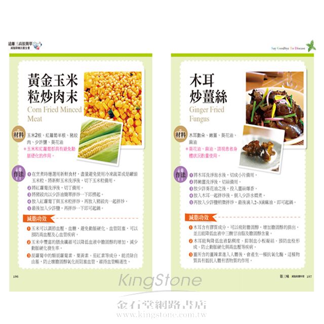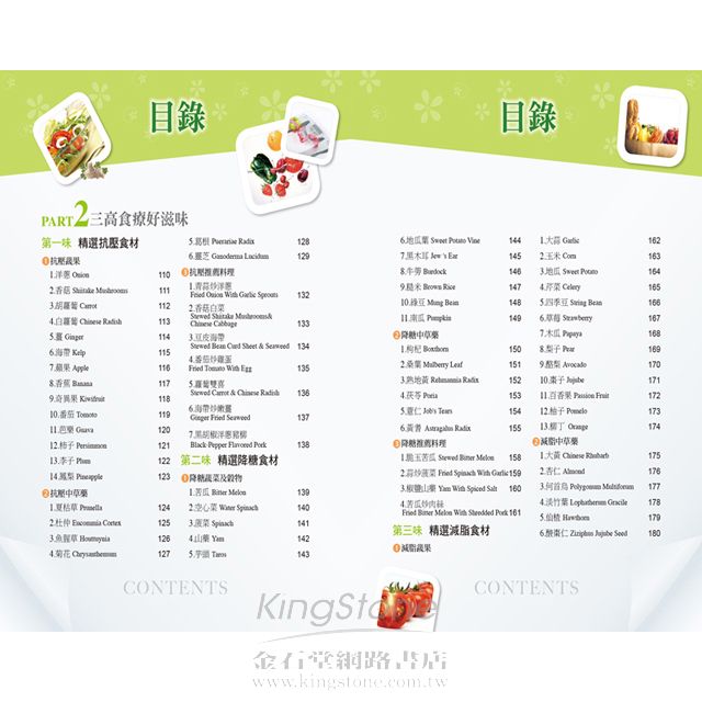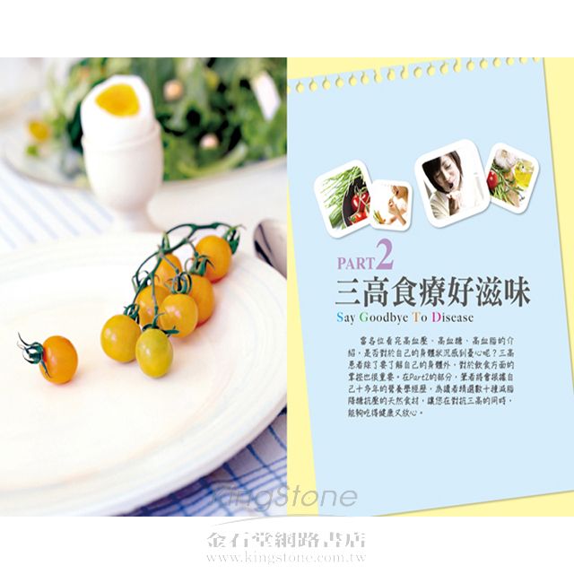 清楚而確實的飲食控制,告訴您每天應該吃什麼,同時標示出各種食材的營養價值,讓您越吃越健康;最後附上18道運用低油脂、高纖維的養生料理,調製專屬配餐。