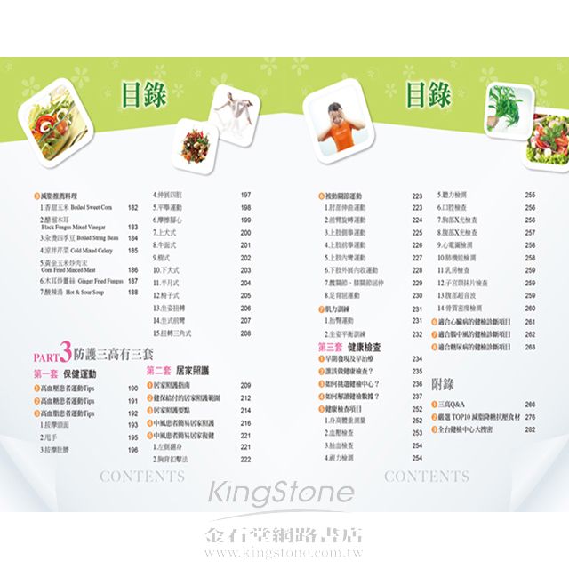 →找出身體潛在的肥胖因子,看看自己屬於高血壓、高血脂、高血糖的哪一種,又或者您已經是三高的代言人?了解三高的定義與成因及其併發症,從改善自身生活習慣開始,飲食、運動、藥物治療,再搭配健康速報,教你遠離三高零負擔。