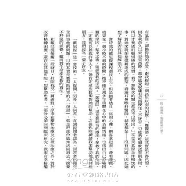 身心困擾並不是非藥不可,想尋求非藥物協助的人,我想讓他們了解,的確有可以不吃藥就痊癒的方法存在,而且國外的研究也不少,寫這本書目的,就是提供大家相關的資訊,並了解其中可能性以及作法。