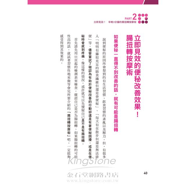 立即見效的便秘改善效果!腸扭轉按摩術40
