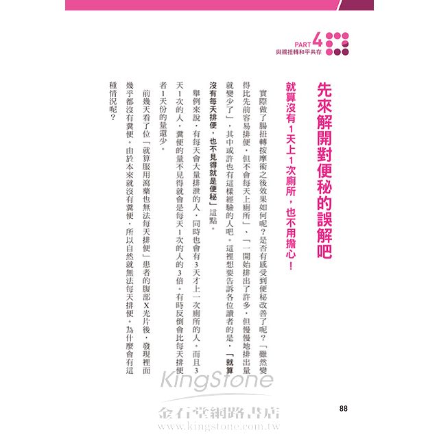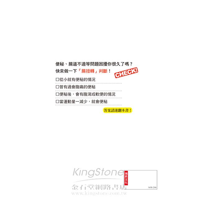 便秘、腸道不適的問題困擾您很久了嗎?本書的按摩術輕鬆好做不費力、只要早晚各一次、每次3分鐘即可,趕緊來試試吧!