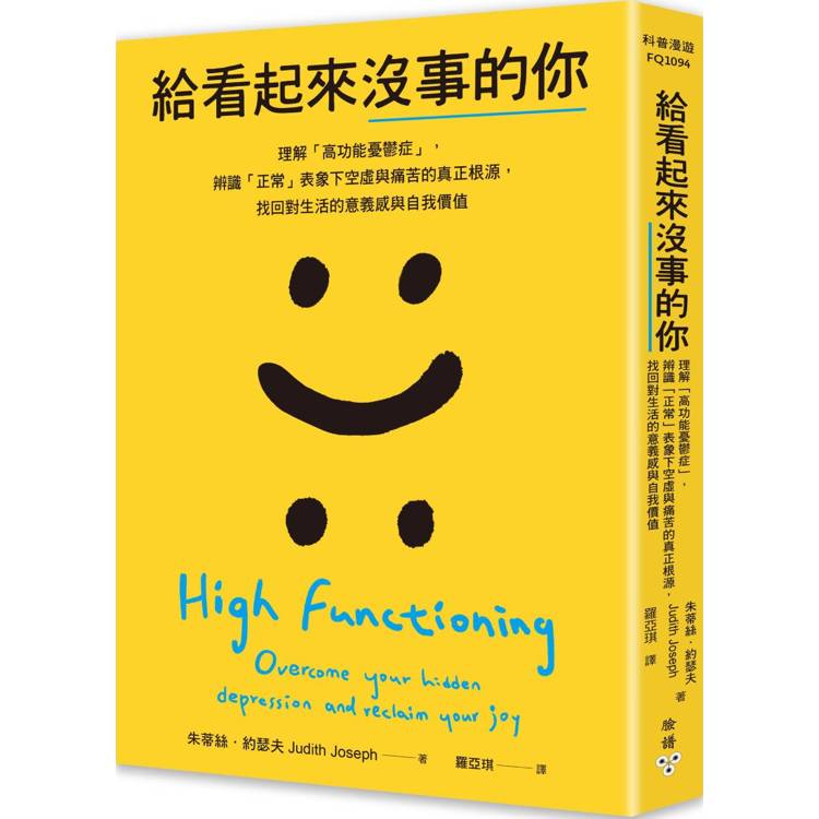 據估計,光在美國可能就有數百萬計的人患有高功能憂鬱症、上千萬人曾經出現過相關的症狀,然而這個現象長久以來都沒有得到應有的重視。本書作者、精神科醫師朱蒂絲.約瑟夫是系統性研究高功能憂鬱症的第一人,她為這個影響廣泛的心理流行病提出定義、探究其根源和臨床症狀,並研發能夠自我療癒HFD重要工具。