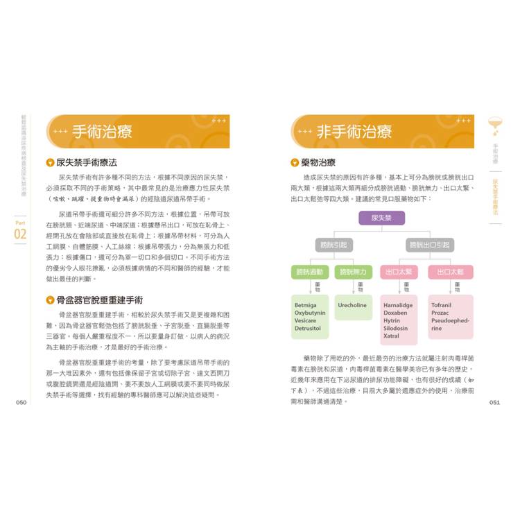 ☑全面解析泌尿疾病與治療方式:涵蓋尿失禁、膀胱過動症、攝護腺肥大、泌尿道感染等常見病症,並詳述手術與非手術療法。