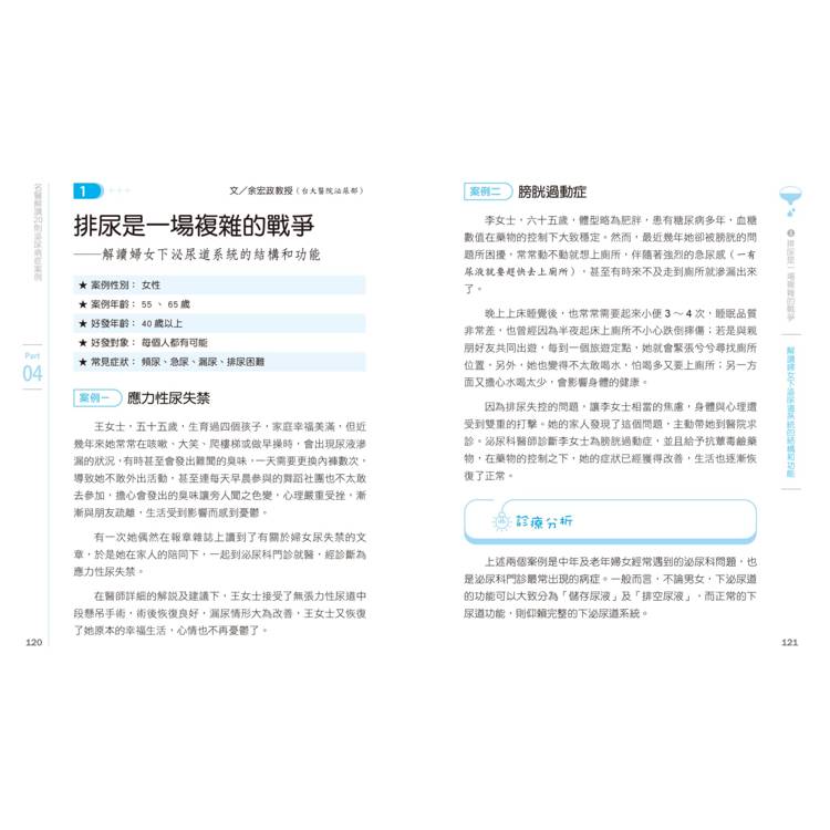 ☑名醫實例解讀20則真實病案:深入剖析各年齡層、不同性別的泌尿困擾,讓你從故事中學習照護與預防之道。