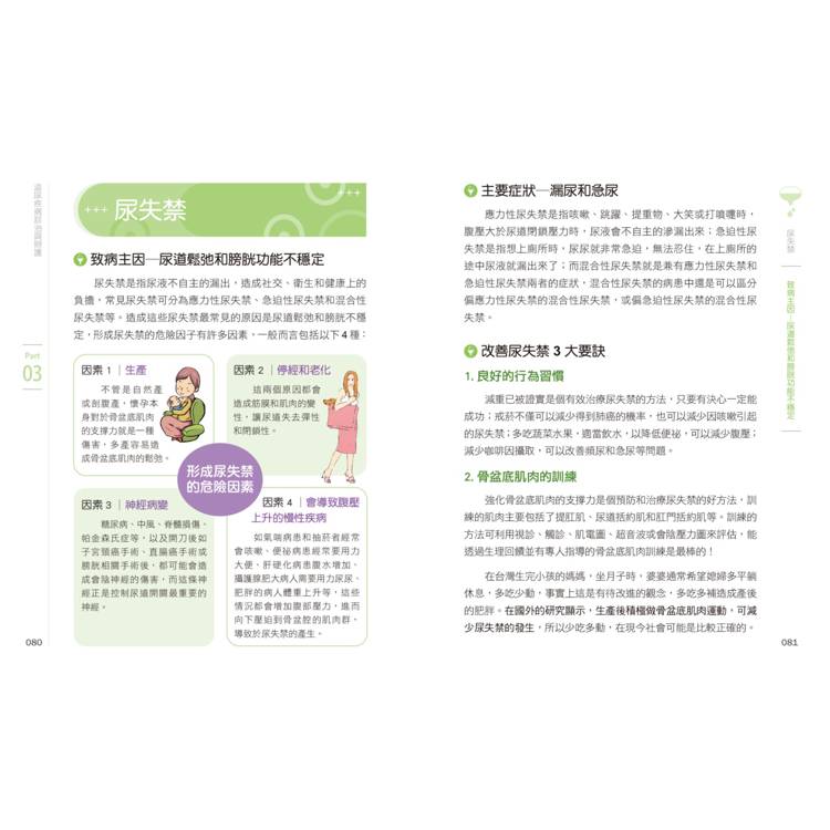 ★女性讀者(30~65歲)常見困擾:產後漏尿、更年期膀胱過動症、間質性膀胱炎、糖尿病引發的泌尿問題。