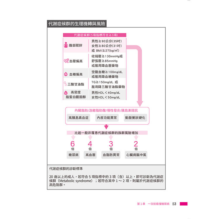 糖尿病早期無症狀很容易被忽略,但你不知道的是胰島素功能早已逐漸喪失。醫學研究指出:初診斷為糖尿病者,胰島細胞功能只有正常人的一半,隨著病程時間又會以每年 4~5%的速度衰退;而讓人震驚的是胰島素阻抗診斷10年前就有端倪,餐後高血糖發生在 6 年前,而空腹血糖增加在2年就出現。況且,尚無單一特效藥物能服用後完全根治糖尿病,最重要的是仍需要良好的飲食控制才能讓血糖達標。本書從潛伏期的代謝症候群、糖尿病的診斷、篩檢、指數、併發症與共病、監測,甚至如何逆轉且預防難纏的慢性健康殺手,說清楚讓你一次就看懂。