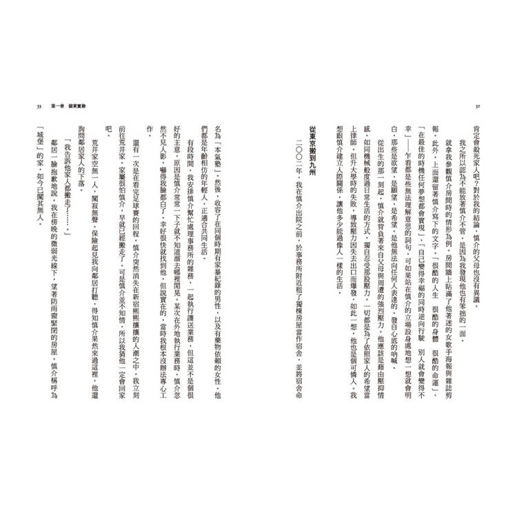 則夫宣示自己的決心時,坐在副駕駛座的父親完全沒有插話。我從那道頑固的背影感受到,父親並不打算相信兒子。我繼續跟則夫交談。