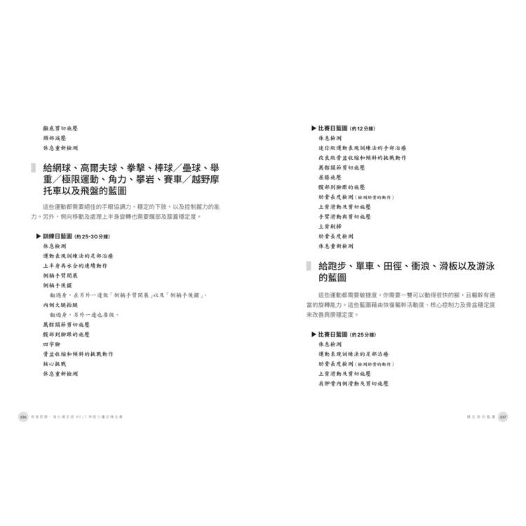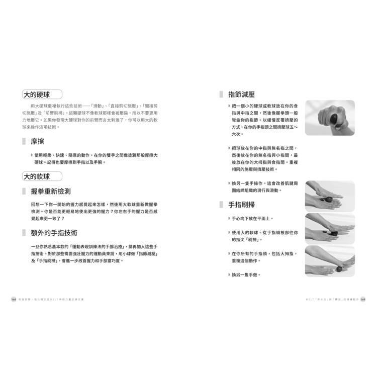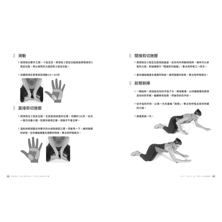 休息檢測與休息重新檢測|運動表現訓練法的手部及足部治療|運動表現訓練法的手部治療|運動表現訓練法的足部治療|重新檢測|上半身再水合連續動作|下半身再水合及下背減壓的連續動作|坐姿施壓的連續動作|頸部釋放的連續動作