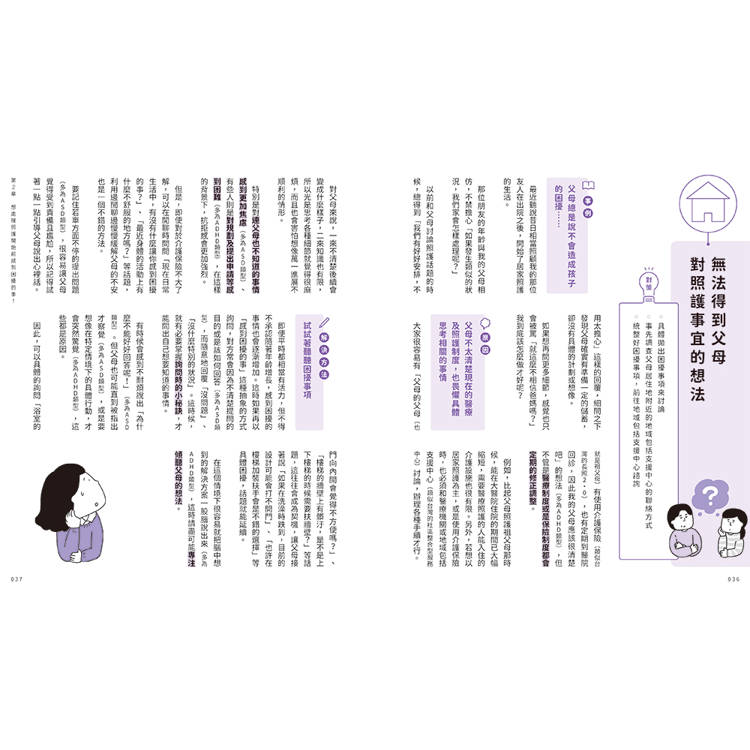 書中包含了多個案例,展示了發展障礙者會遇到的問題與原因,並透過各種解決方法以更好的改善煩惱與困境。