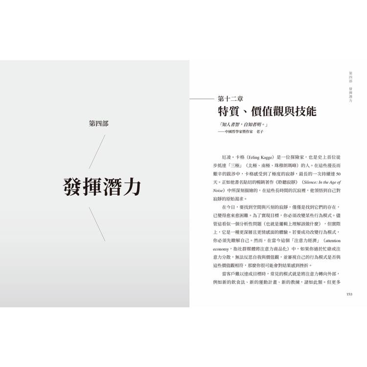 在第四部〈發揮潛力〉中,你將瞭解,達成目標的最大障礙,其實就藏在你雙耳之間的六英吋裡。中年生活的各種挑戰,很容易讓人陷入更負面、焦慮與悲觀的心態。你可能早已失去年輕時那份