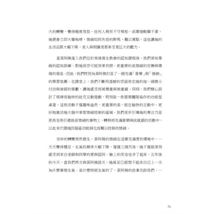 作者投入竭盡其生命的智慧與努力,開發出一連串失智預防的教材教法,不僅培訓眾多講師群,也同時傳授給失智患者及其家屬,打造大腦可以回春的遠大希望。