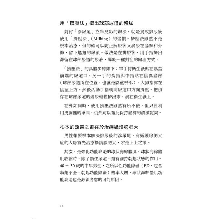 ˙ 男性的「滲尿尾」可用「擠壓法」(Milking)對症的處理