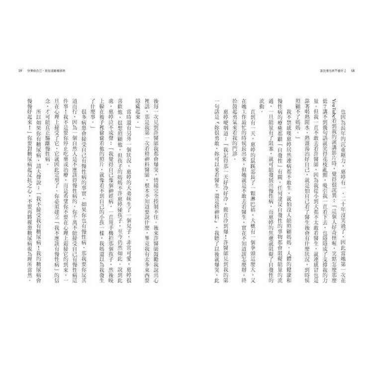 本書透過真實案例與身心靈整體健康觀點,陪你看見慢性病背後的壓抑、委屈、無力與自我否定,也陪你一步步鬆開內在的結,找回快樂、力量與做自己的空間。療癒,不是更用力對抗疾病,而是開始站回自己這一邊。