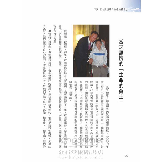 ●困難是很微不足道的,當我們遇到挫折時,想想云成兄弟。他們深深地理解上天讓他們活下來已經是一種恩賜,用鬥志和智慧去迎戰每一個今天和明天。------郭台銘