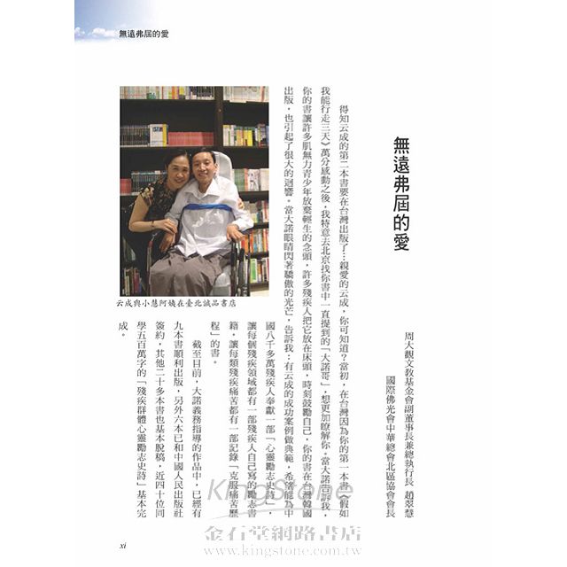 ●雲成有顆慈悲的心,他總把別人對他的一點點好擴大成為一種恩情,我從云成身上學習到真正的謙卑與感恩。------趙翠慧