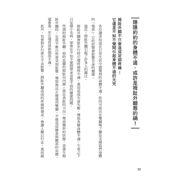 拇趾外翻會使步行時引發疼痛與不適,進而造成全身失衡,導致各種身體不適。乍看之下只是個小毛病,卻會在不知不覺間帶來意想不到的健康問題。