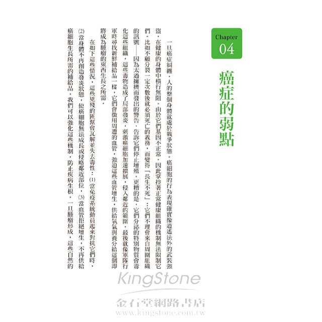 本書談的是預防癌症以及加強治療效果的自然保健方法,是作為正規治療法(如手術、放療、化療)的輔助之用。本書內容不能取代醫師的醫囑。本書的目的也不是用作診斷或治療之用。