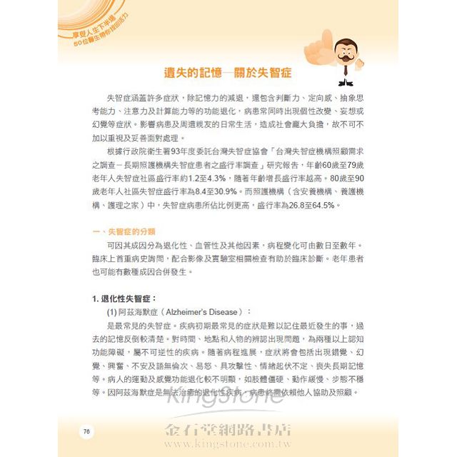 2.掌握好健康,才有好生活,專業醫師執筆,涵蓋身心理層面與重要常見疾病,是銀髮族必讀、青壯年必準備的全方位工具書!