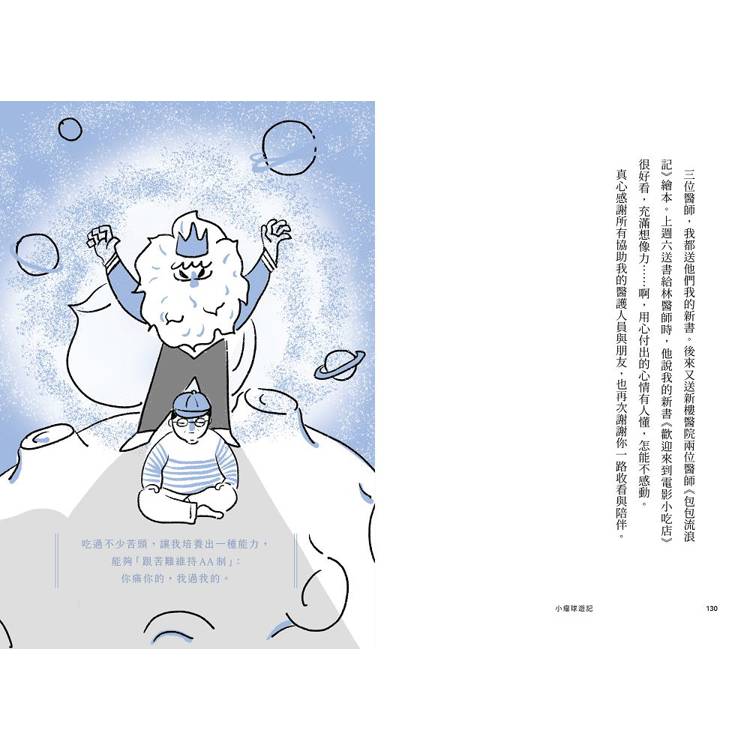 二〇二五年,命運再次向他遞出艱難考題,確診鼻咽癌二期。曾帶領無數人打破思考框架的他,坦言自己一度惶恐、疑惑,卻又再次展現強大意志,與獨有的奇幻想像力。他將腫瘤命名為「小瘤球」,將抗癌過程的「戰場」視角,重新定義為「遊記」。一場關於疾病、陪伴、勇氣、有笑有淚的療癒旅程,就此展開。