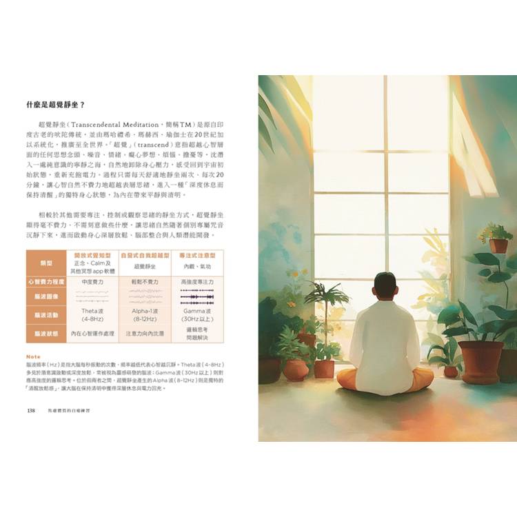 書中介紹「超覺靜坐」、日常調息與感官照護的方式,