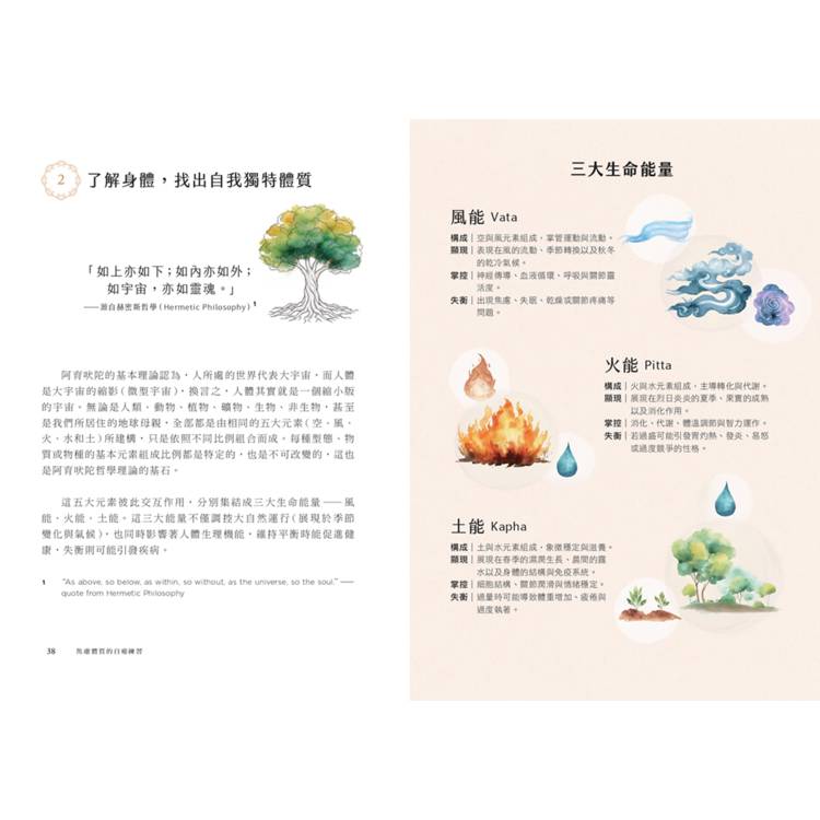 在繁忙多變的現代生活中,找到安適自我的平衡至關重要。作者以真摯淺顯的文字,整體性的介紹了「阿育吠陀」,讓我這超級小白也能系統化的快速認識印度傳統醫學。